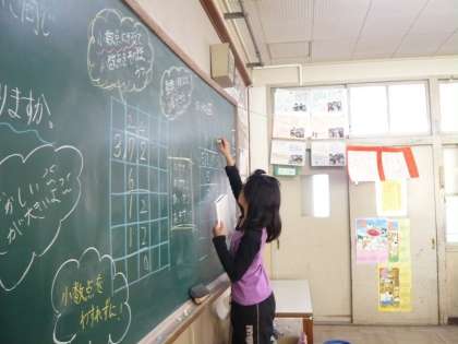 子どもたちは,小数も整数と同じように計算することに気づいているので,たし算・ひき算・かけ算ときて今日のわり算では,すんなり計算することができました。
