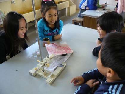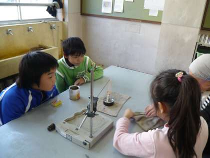 子どもたちも,見る見るうちにろうが融けていくのを見て,大興奮でした。