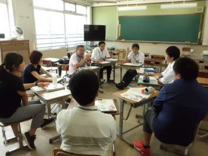 後半の分散会では,「学習指導」「児童会・生徒会」「育成学級」「生徒指導」「学校事務」というテーマに分かれて,小学校が積み上げてきたこと,中学校が積み上げてきたことをそれぞれ交流し,小中連携をさらに進めていくための方針を話し合いました。2学期からそれぞれの学校での取組を進めるにあたり,有意義な時間を過ごすことができました。