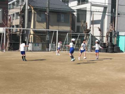 なわとびの学習が始まりました。「両足跳び」「片足跳び」「かけ足跳び」「交差跳び」「あや跳び」「二重跳び」に挑戦しています。できない跳び方に挑戦するのはもちろん,今できる跳び方で連続何回跳べるのかにも挑戦中です。