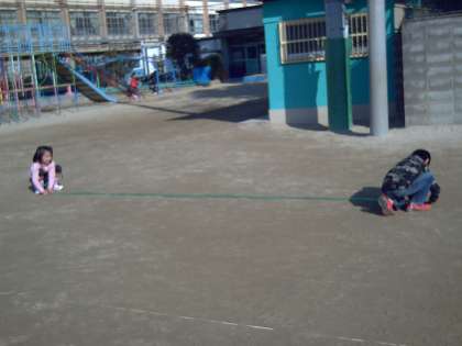 今日の算数の時間は,5メートルのひもをつかって,いろいろなところの長さを測りました。