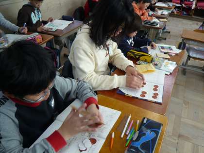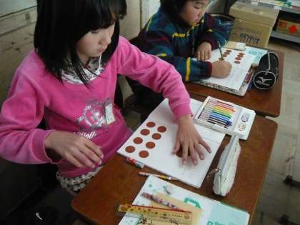 実際に,10円玉の紙を並べて,それぞれが計算の考え方を出し合いました。
