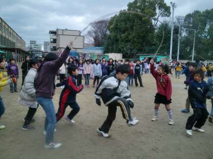 2月9日,西院小学校の運動場で,中学年の大なわ大会が行われました。