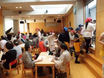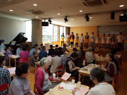 今回は,受付や配膳というボランティア活動だけでなく,地域の方々に喜んでもらえる催し物を考え披露しました。「おぼろ月夜」「翼をください」「西院小学校の校歌」を歌い「エーデルワイス」をリコーダーで演奏しました。