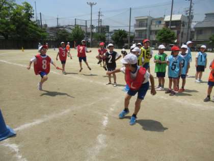 4年生では,体育の学習で「リレー」に取り組んでいます。