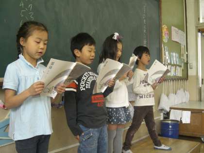 「どきん」のおんどく発表会です。みんな工夫して読んでいました。