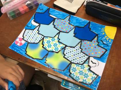 5年1組では, 算数科の学習でしきつめ模様を作りました。