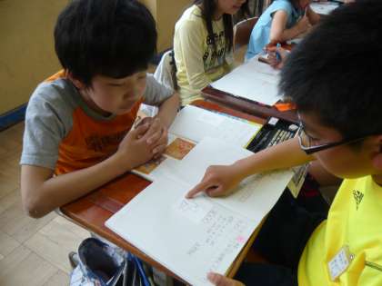 全体の場では、黒板を使って自分の考えを伝えていました。