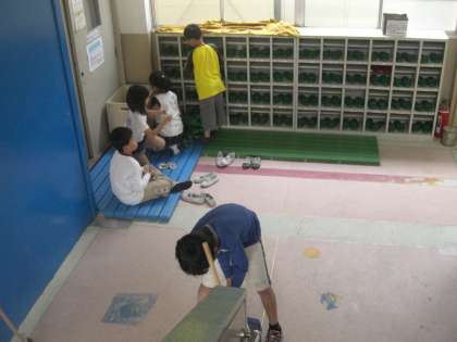 今日は週末。お世話になった学校の校舎をみんなできれいにしています。