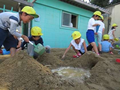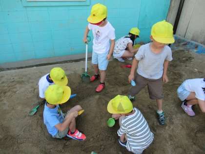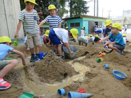昨日,今日とで,全クラス造形遊びを行いました。砂や土を使ってどんなことができるかを考え,いろんな道具を使って活動しました。友達と楽しくいろんなものをつくっていました。