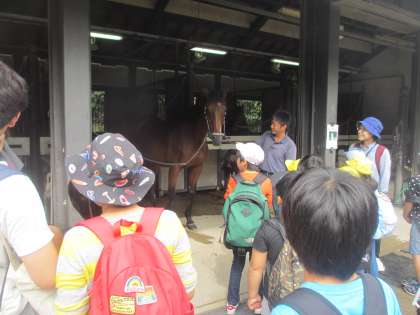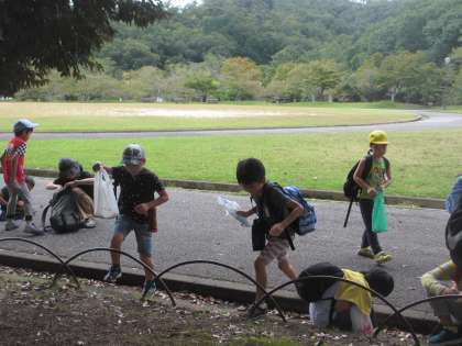 10月11日(金),宝が池子どもの楽園に行ってきました。子どもの楽園に行く前に平安騎馬隊の馬を見学したり触ったりしました。警察の方に馬のことをたくさん教えていただきました。子どもの楽園では,長い滑り台や迷路など,約束を守りながら楽しんでいました。楽しみにしていたお弁当もみんなでおいしくいただきました。秋の自然を感じながら,どんぐりや木の実を見付けて拾いました。