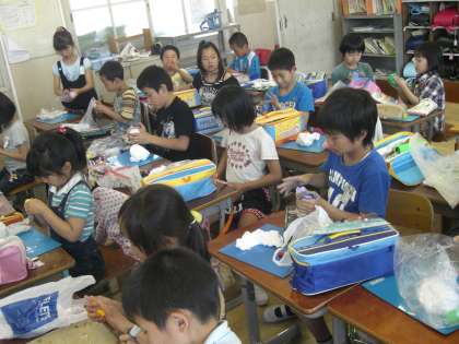 みんなは紙ねん土に絵の具を混ぜていくのに必死です。