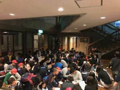 本日のよかったことや反省を出し合い,2日目の活動に生かします。