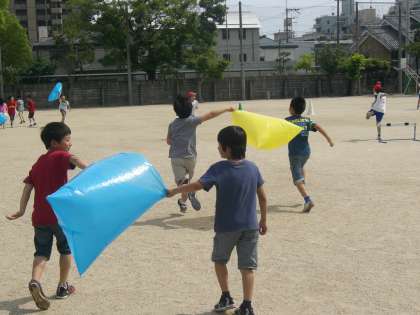 一時間目の導入では、ビニルぶくろを使って遊んでいます。