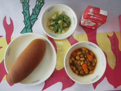 2年1組の児童からは「チリコンカーンがトロトロってしていてあまくておいしかったです。」カレー粉もしっかりと効いていましたが,豆の甘さもしっかりと味わっていますね。「アスパラガスのソテーがシャキシャキしてて,コリコリってしていておいしかったです。」という感想がよせられました。