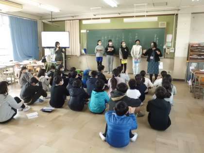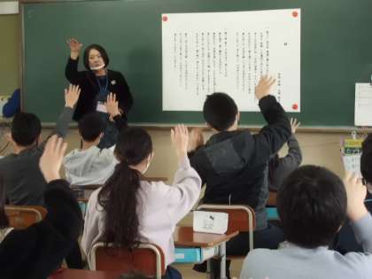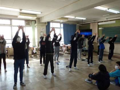 また,今年度は,卒業式で声を出しての合唱ができないため,手話で「絆」という歌を表現したいという6年生児童からの依頼を受け,「絆」の手話の授業が行われました。