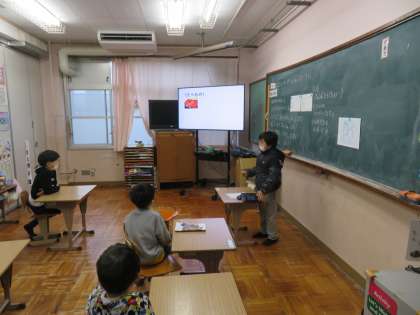 矢車学級は生活単元学習の授業で自分が調べたことや1年間頑張ったことの発表を行いました。1年生は生活科の学習で1年生でできるようになったことを発表しました。2年生は国語の「カンジーはかせの大はつめい」で漢字と漢字を組み合わせて新たな漢字を作りました。どの学年の子どもたちも一生懸命授業に取り組んでいました。
