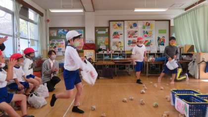 ダンス(パプリカ),おちたおちた,玉入れを子どもたちはとても楽しんでいました。西院小学校は総合司会を務めましたが,しっかりと司会の役割を果たすことができました。