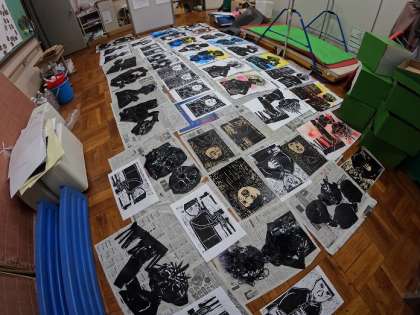 7日(火),矢車学級は図画工作の学習で版画の「刷り」を行いました。