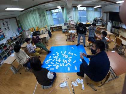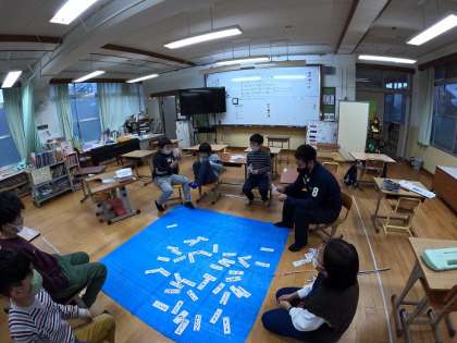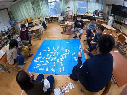 今回の学習では,「名詞カード」と「動詞カード」を使い,チームで釣るカードを決めて,一文を作りました。この学習を重ねることで,名詞と動詞の違いがだんだん分かってきました。また「助詞カード」なども使いながら,文作りの学習も進めていきたいと思います。