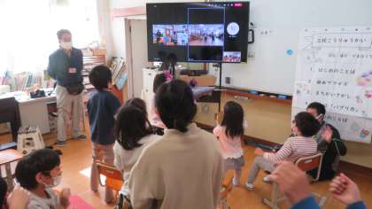 曲あてクイズやまちがいさがし,ダンス「パプリカ」はとても楽しく,子どもたちは大盛り上がりでした。山ノ内小学校・安井小学校の友達と楽しいひと時を過ごすことができました。