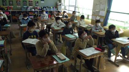 UNIT9の第3時間目の学習をしました。はじめに教科書のお話の読み聞かせをしました。話の順番に教科書に番号を書きました。読み聞かせに合わせて口ずさめる部分は口ずさんで言いる児童が見られました。次にチャンツをして,最後にジェスチャーゲームをしました。子どもたちは楽しみながらお話の内容に慣れ親しむことができました。子どもたちの振り返りから。「お話の内容が大まかに分かるようになってきた。」「ジェスチャーゲームで言い方がわかるようになったが歯磨きの英語がまだむずかしい。」
