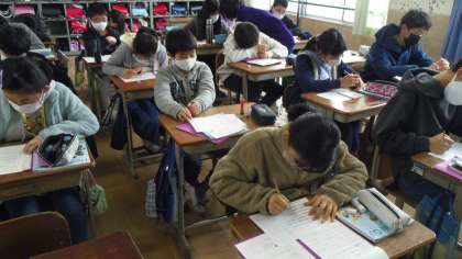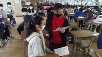 UNIT9の学習が後半に入りました。クラスにより進度が少し異なっていますが,4,5組では中学校で入りたい部活動,中学校でがんばりたい勉強についてペアで伝え合いました。1組ではその内容にさらに将来の夢や自分ができること等についてスピーチができるようにメモを書きました。子どもたちは今までに学習した表現も使って英語で伝えられる内容が増えてきました。
