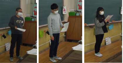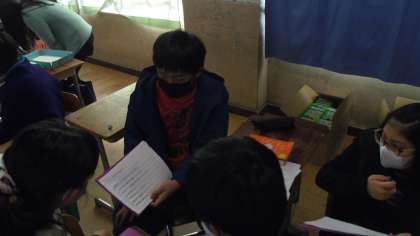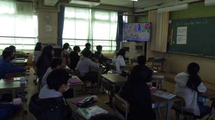6年の2つのクラスで中学校で入りたい部活動・中学校でがんばりたい勉強・将来の夢などの今までに学習をした表現を使って伝え合いました。前半はグループで伝え合い,後半は数名の児童が全員に発表しました。自分から進んで全員の前で発表する児童もいました。多くの子どもたちが今までに学習した表現を使ってしっかり伝える事ができていました。