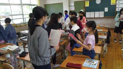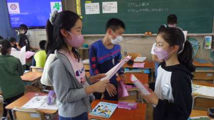 Unit1の3時間目の学習をしました。歌,チャンツに続いてペアで自己紹介をし合いました。子どもたちのふりかえりから「相手の目を見て話すことができた。」「出身地の尋ね方Where are you from?がすぐにでてこなかった。」「新しいクラスになった友達に自己紹介ができた。」