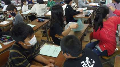 今日はUnit1の2時間目の学習をしました。自己紹介の言い方で「自分の名前のつづりをたずねたり答えたりする言い方」について学習しました。午前中はALTの先生と一緒に学習しました。ALTの先生から名前のつづりをたずねる表現How do you spell it?の言い方を教わり,チャンツで慣れ親しみました。そしてペアで名前のつづりをたずね合ったり,自分の好きなものをつたえ合ったりしました。