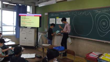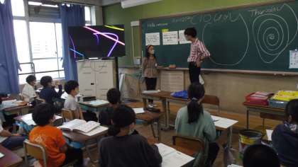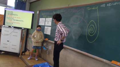 授業の最後にはチャレンジタイムとして何人かの子どもがALTの先生と1対1で今日学習した表現を使って伝え合いました。子どもたちはとても緊張していたようですが,しっかり伝え合おう事ができていました。
