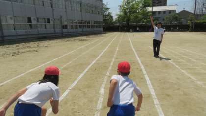 25日(月),矢車学級は体育の学習で徒競走に取り組みました。
