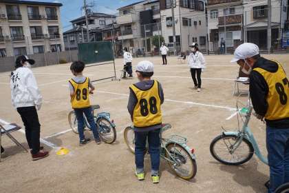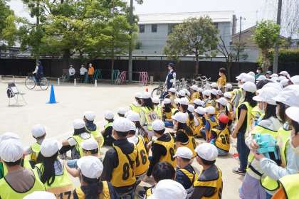 警察署の方や,右京区の交通安全ボランティアの方にご協力いただき,交通安全教室を実施することができました。子どもたちは,自分たちの住む右京区で事故が多いことを知り,真剣なまなざしで自転車の乗り方を学ぶことができました。