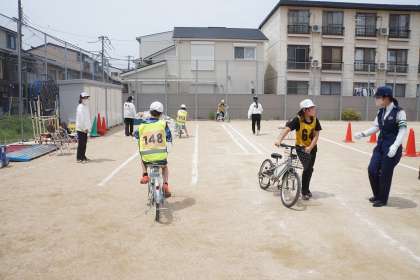 実技試験では,安全確認をしっかりと行い,安全に自転車の乗ることを意識できていました。実生活でも,安全に交通ルールを守って自転車に乗ってほしいと思います。