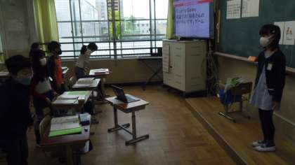 子どもたちの振り返りより「天気の言い方を覚えた」「遊びに誘う言い方ががまだ少し難しい」「ゲームが楽しかった」