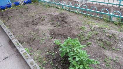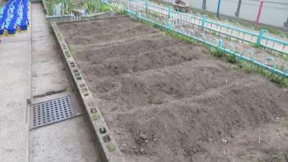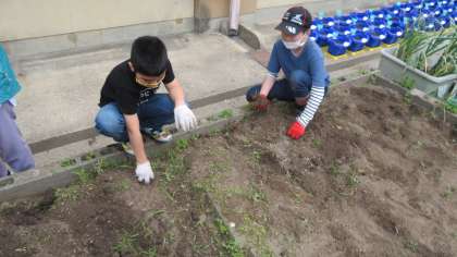 タマネギの収穫後,学校園にはニンニクとジャガイモだけが植わっています。今回,学校園を整備し,新たに植えることができる状態にしました。