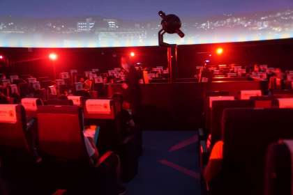 4年生は,みんなでプラネタリウムを体験しました。科学センターの方の説明がとても面白く,興味津々で話を聞いていました。