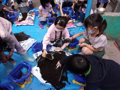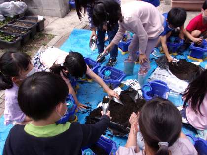 2年生は生活科の学習で,ミニトマトの種を観察し,植えました。芽がしっかり出るように,ふわふわな土になるようにスコップで混ぜたり,種を植えた後すぐに水を撒いたり