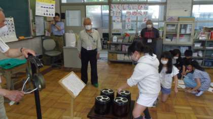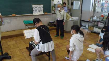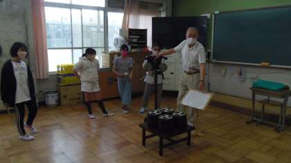 5月18日から今年度の部活動が始まりました。六斎念仏にも新しく4年生が加わり楽しく部活動を行いました。地域の方々に指導してもらって太鼓のリズムを教えていただきました。