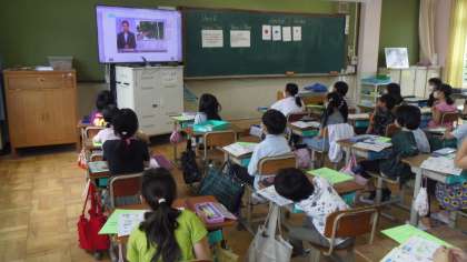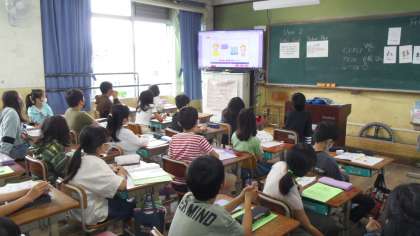 Unit2の3時間目の学習をしました。はじめに天気の言い方を確認しました。多くの子どもたちが天気の言い方に慣れてきているようです。次に教科書の電子教材を使ってLet's Listen をしました。世界の6か所の天気を聞いて教科書にその場所の天気を書き込みました。