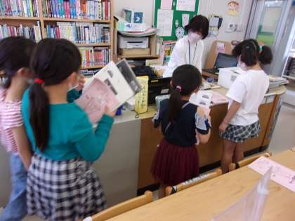 2年生は国語科の学習で,図書室に行き,本の探し方や本の借り方について,学校司書の先生に教えていただきました。2年生になることで,様々な本に興味を持ち,「この本おもしろそうだな。」「どんな本なんだろう。」と声を上げ,図書室はにぎわいを見せていました。