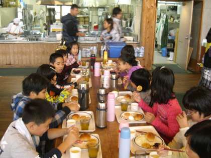 朝もお楽しみのバイキングです。パン食でもごはん食でも選べるメニューでした。みんな元気で朝からもりもり食べていました。