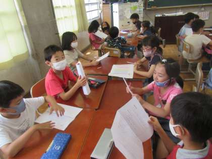 今日は,各クラスで作成したリーフレットを交流しました。交流をすることで,レオ=レオニさんの作品の面白さに気付くことができました。