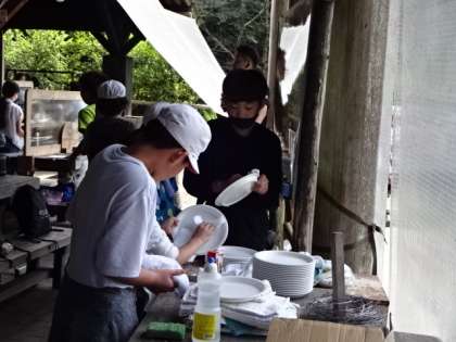かまどの後始末や食器洗いなど,後片付けも一生懸命頑張っていました。