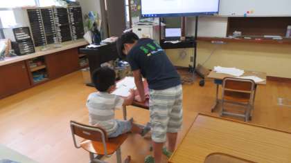 この日も自分の課題に向かって一生懸命勉強しました。高学年が低学年の友達に優しく教える姿がありました。