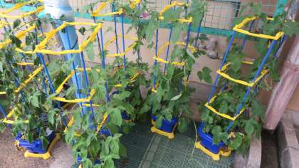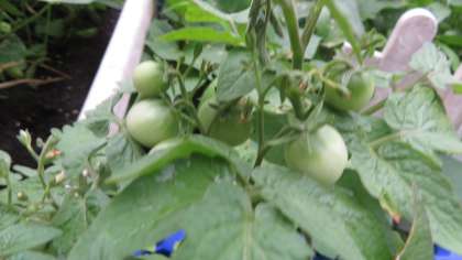 2年生ミニトマトは緑色の実が少しずつ大きく,数も増えてきました。