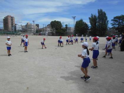 3年生体育科は,四条中学校のグラウンドをお借りして,ハンドベースボールの学習をしています。複雑なルールを覚えるのは難しい様子でしたが,遠くまでボールをとばすことができたり,うまくとんできたボールをキャッチできたりして喜んでいる人もたくさん見られました。エンドボールのときと同様,どのようにすればゲームに勝てるのか,チームメイトと言葉を交わしながら学習を進めてほしいと思います。