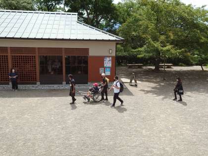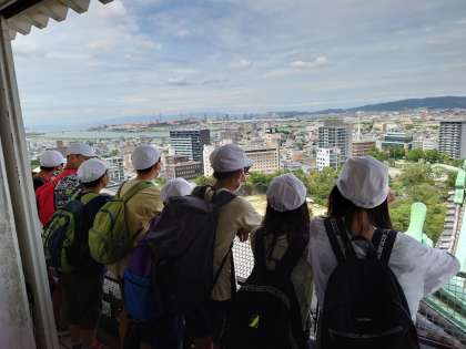 天守閣頂上からの眺めは素晴らしく、みんな感激しています。