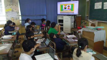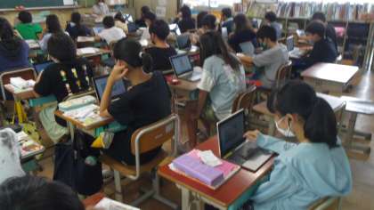Unit4の3時間目の学習をしました。はじめにThis Is the Wayの歌を歌いました。次にデジタル教科書を使って表現や単語に慣れ親しみました。そのあとでどれぐらいお手伝いをしているかをペアで伝え合いました。最後に自分が普段しているお手伝いについてワークシートに書かれている文字を見ながら書き写しました。