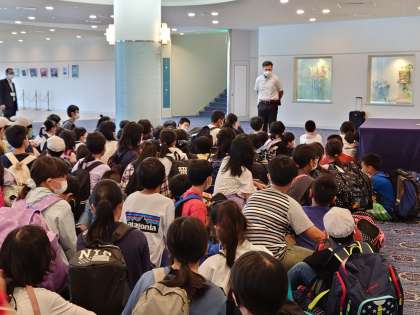 退所式を行い、お世話になったホテルの職員の方々にお礼を言いました。